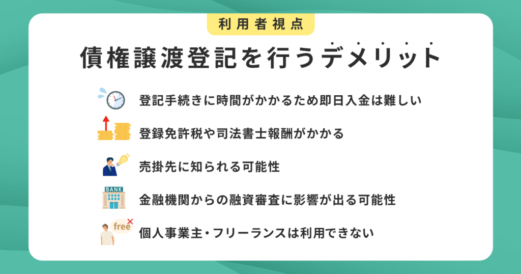 次に、ファクタリング利用者が債権譲渡登記を行う際のデメリットについて解説します。