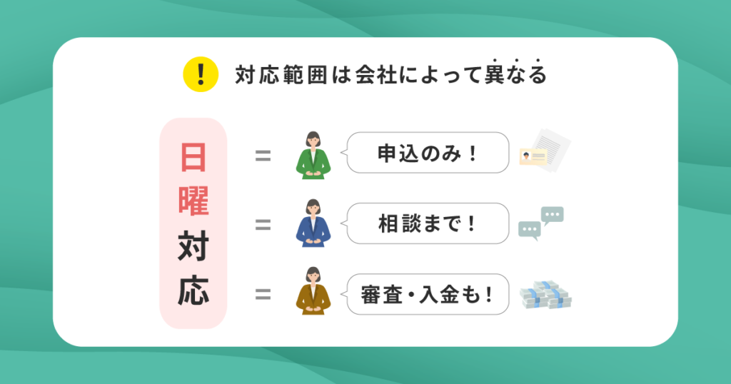 ただし、「日曜対応」と記載されていても、対応範囲は会社によって異なる点に注意しましょう。