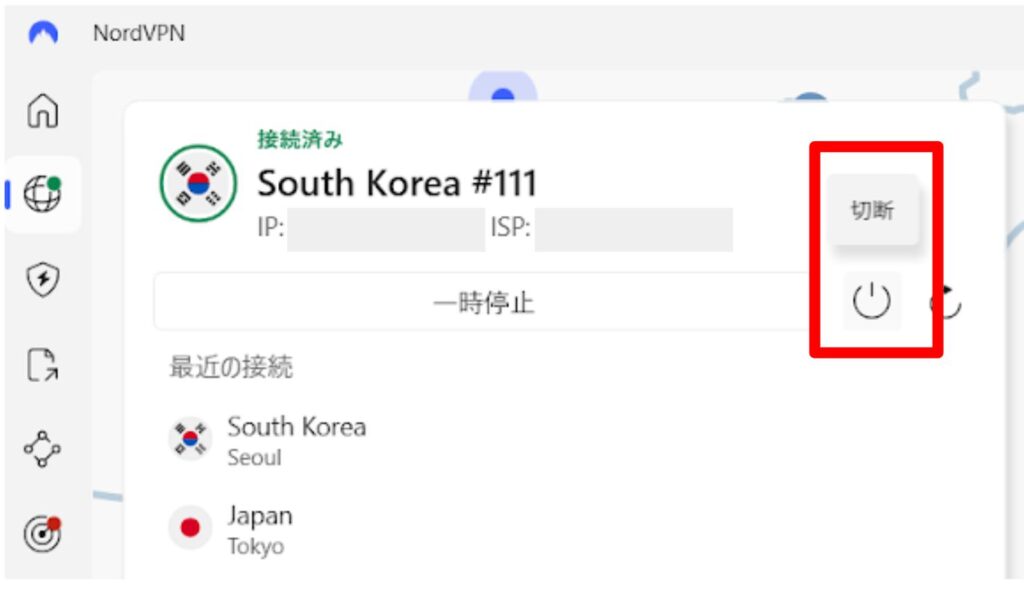 NordVPNでは電源ボタンで切断が可能です。