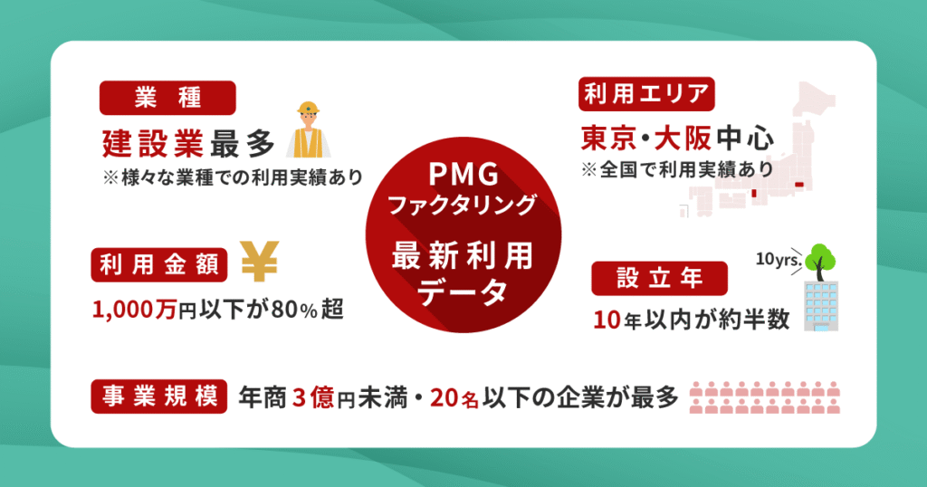 ファクタリング会社によっては法人のみを対象にしているケースがありますが、PMGでは事業の規模に関わらず、個人事業主でも利用が可能です。