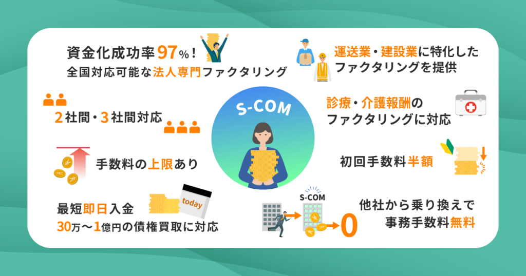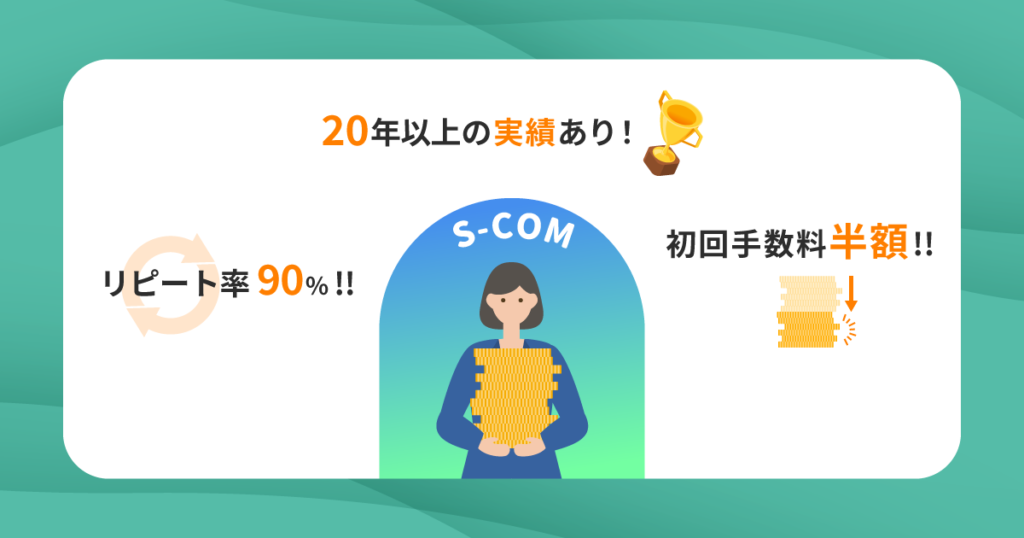 エスコム(S-COM)は20年以上の運営実績がある法人専門のファクタリング会社で、資金化成功率が97%(※)という高い実績を誇ります。