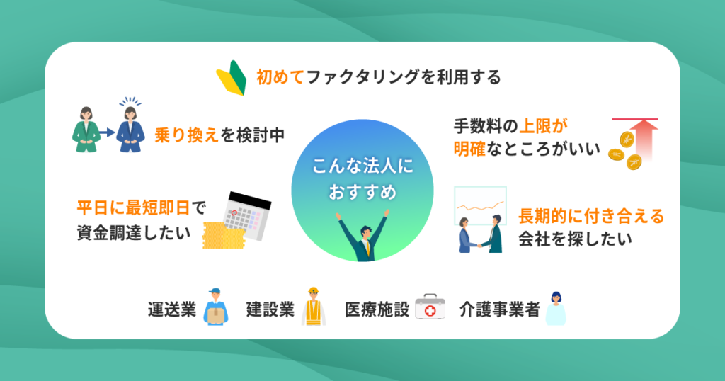 医療・介護分野に精通しているファクタリング会社は多くはないため、該当する場合は一度相談してみましょう。