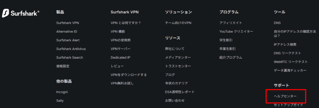 それ以外はSurfsharkのサポートへ問い合わせが必要。