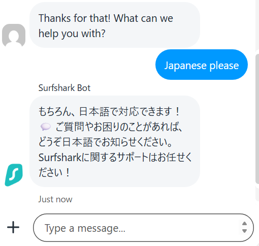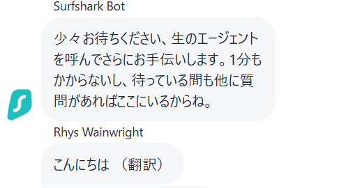 - Surfsharkのライブチャットは日本語に対応している?