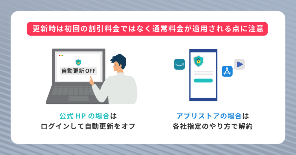 これはVPN保護を継続させるための仕組みですが、更新時には初回契約時の割引料金ではなく通常料金が適用される点に注意してください。