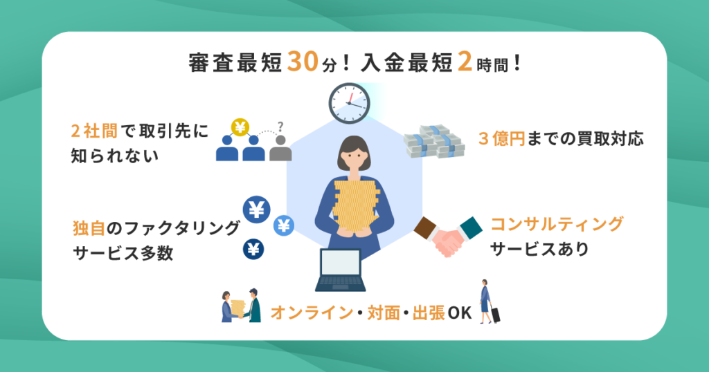 コンサルティングも実施しているため、経営相談まで含めた資金繰り改善を目指したい人におすすめです。