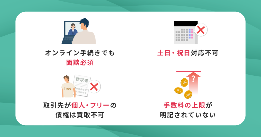 オンライン手続きでも面談が必須なので、面談を避けたい場合やとにかく入金スピードを重視したい場合はほかのファクタリング会社を検討したほうが良いでしょう。