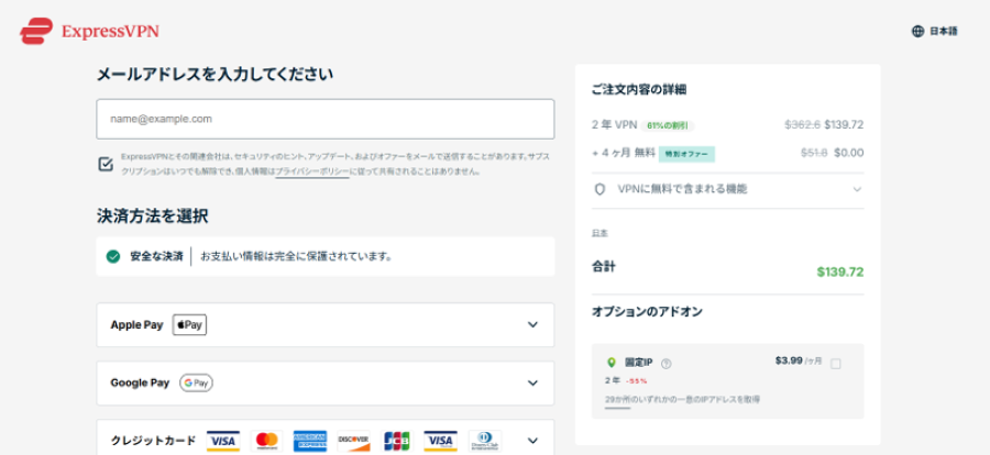 お好みのVPNサービスを選択し、契約に進みましょう。