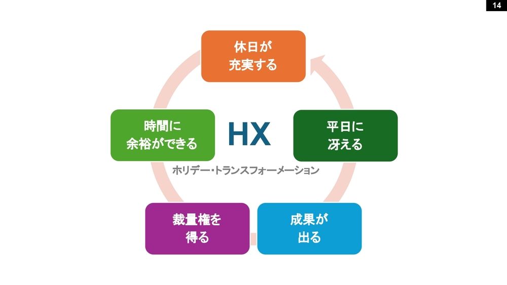 ズバリ、デジタル・トランスフォーメーションの次にあるのは、ホリデー・トランスフォーメーション。この図解の作り方をぜひ覚えておいてください。