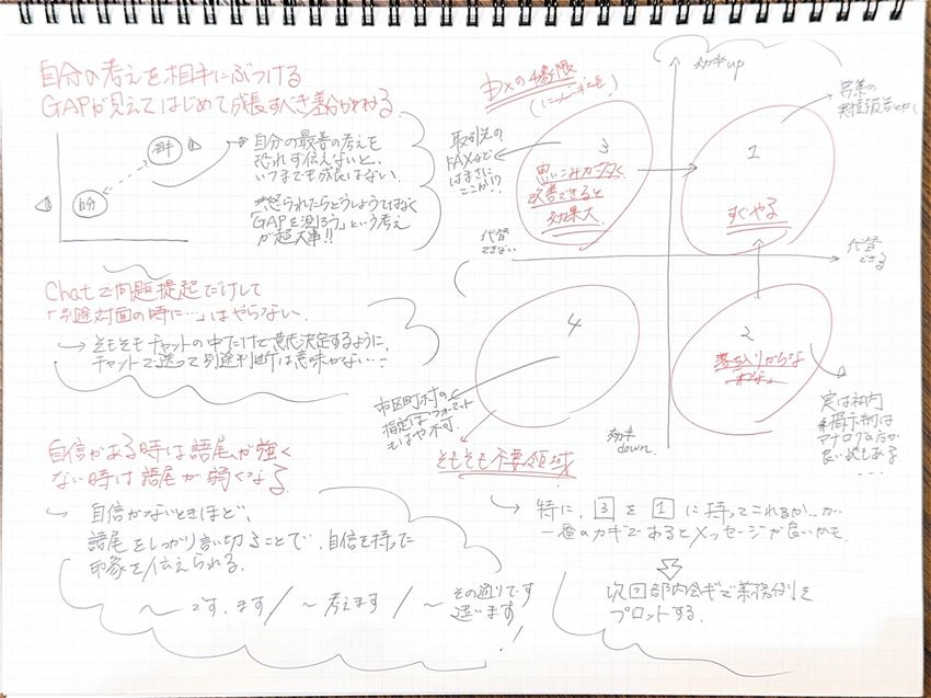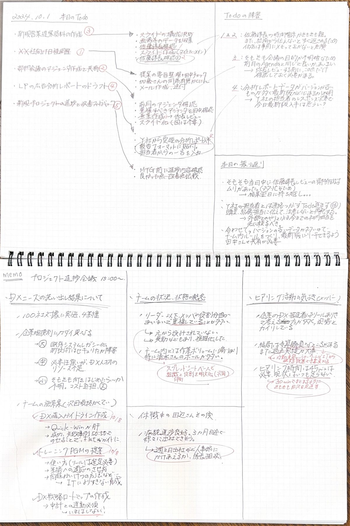 ——書く内容としては、A4ノートを縦に使って、ToDoと、ToDoの障害と、振り返りをメモすると書かれていましたね。