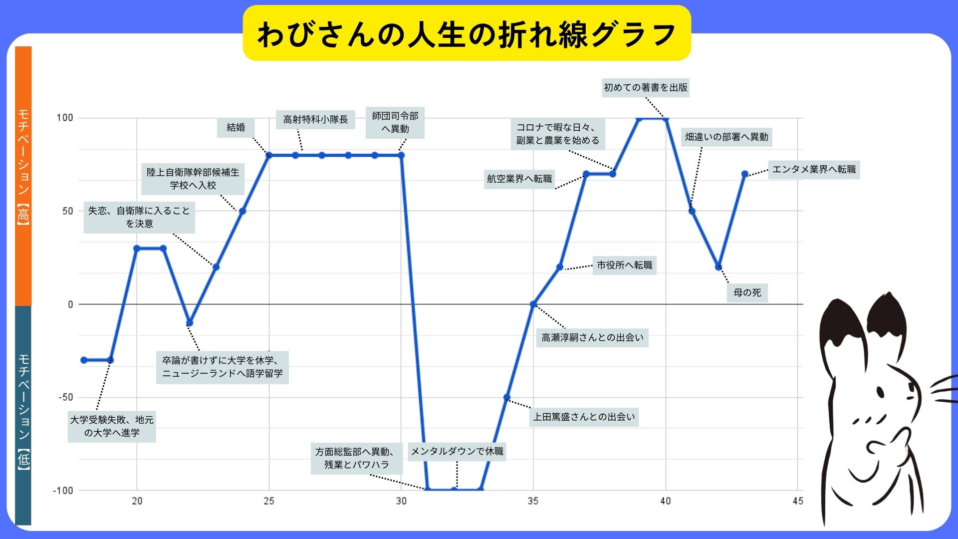 私の人生グラフを見てもらえたらわかるように、本当に一時期は自殺を考えるぐらいメンタルがやられていまして。ビジネスパーソンとして一番伸び盛りの30歳から35歳の期間を失っているんですね。