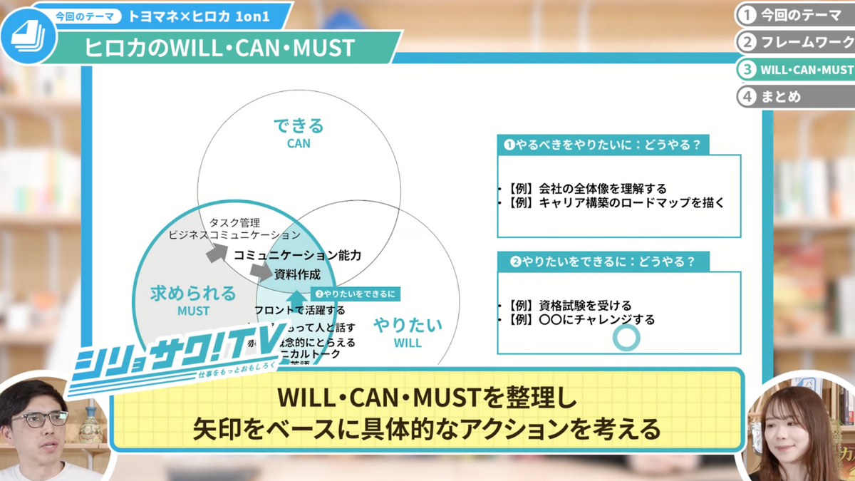 豊間根:じゃあ、それはまた次回、ご期待ください。ぜひみなさんも、「WILL・CAN・MUST」のフレームワークを使って、上司や部下と話してみてください。