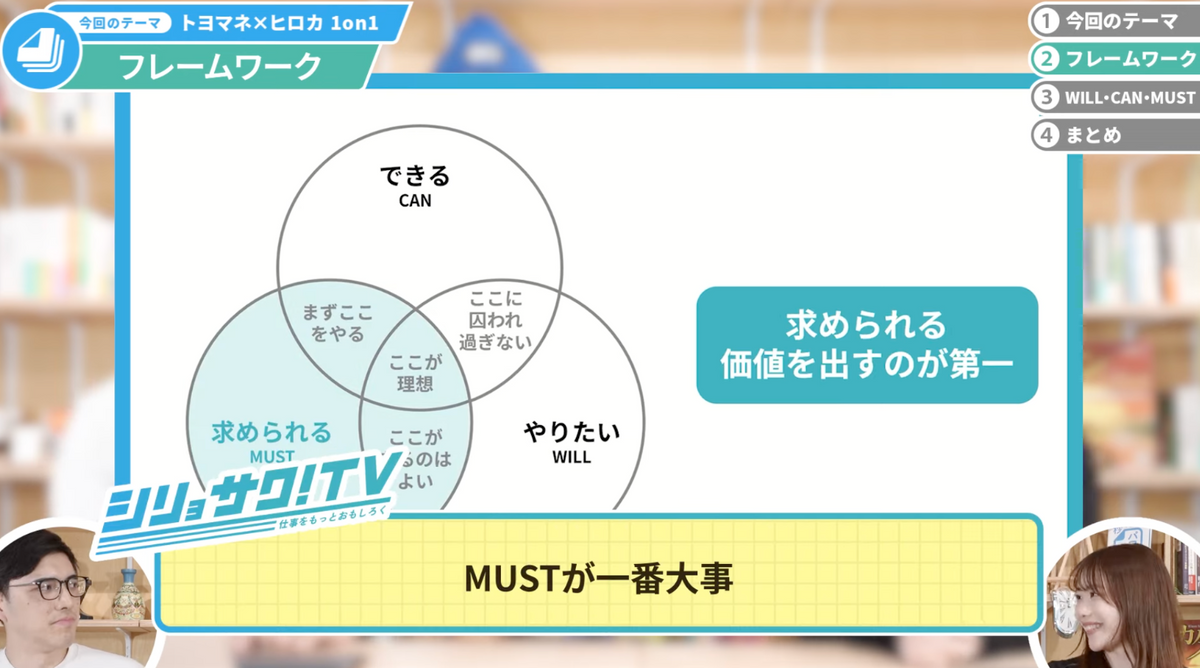 豊間根:だから、まず一番大事なのはMUSTなんですよね。一番最初にやるべきなのは、ここ(MUST)なんですよ。やりたいかどうかは知らないと。「やれ!」と(笑)。