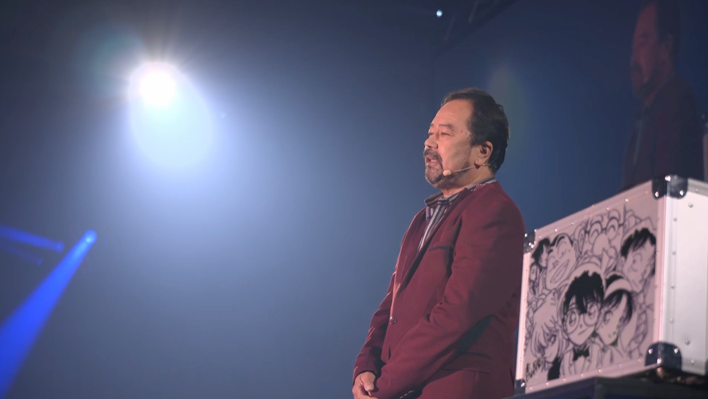 今ちょっと(コナンのキャラクターが描かれた)かばんを置きましたけど、おととい(2025年5月7日)のニュースによれば、おかげさまで「劇場版『名探偵コナン 隻眼の残像』」の興行収入が100億円を超えました。なんと3作連続です。