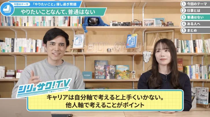 岩本:でも今の時代って、けっこうSNSとかでキラキラしたものが見えたり、「趣味を仕事に」って言う人たちのメッセージを見ちゃったりとか、そういうのでちょっと、「あっ、やりたいことがない自分って、あまり良くないのかな」とか思っちゃう人もいるんじゃないかなと。