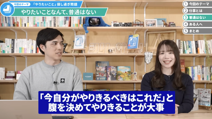 岩本:逆に、今見てくださっている方で、20代後半から30代前半の方、まだやりたいことが見つかっていない方もたくさんいると思うので、すごく勇気を与える動画(笑)。