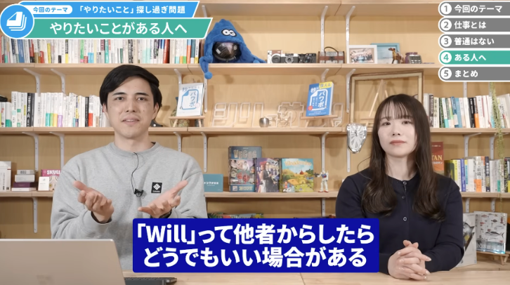 豊間根:やりたいことは普通ないから、やりたいことがあるのはすごくいいんですよ。ただ、こういう「私はこれがやりたいです」がめっちゃあるのっていいんだけど、時々注意が必要なのは、さっきも言ったとおり、「Will」って他者からしたらどうでもいい場合があるんですよね。