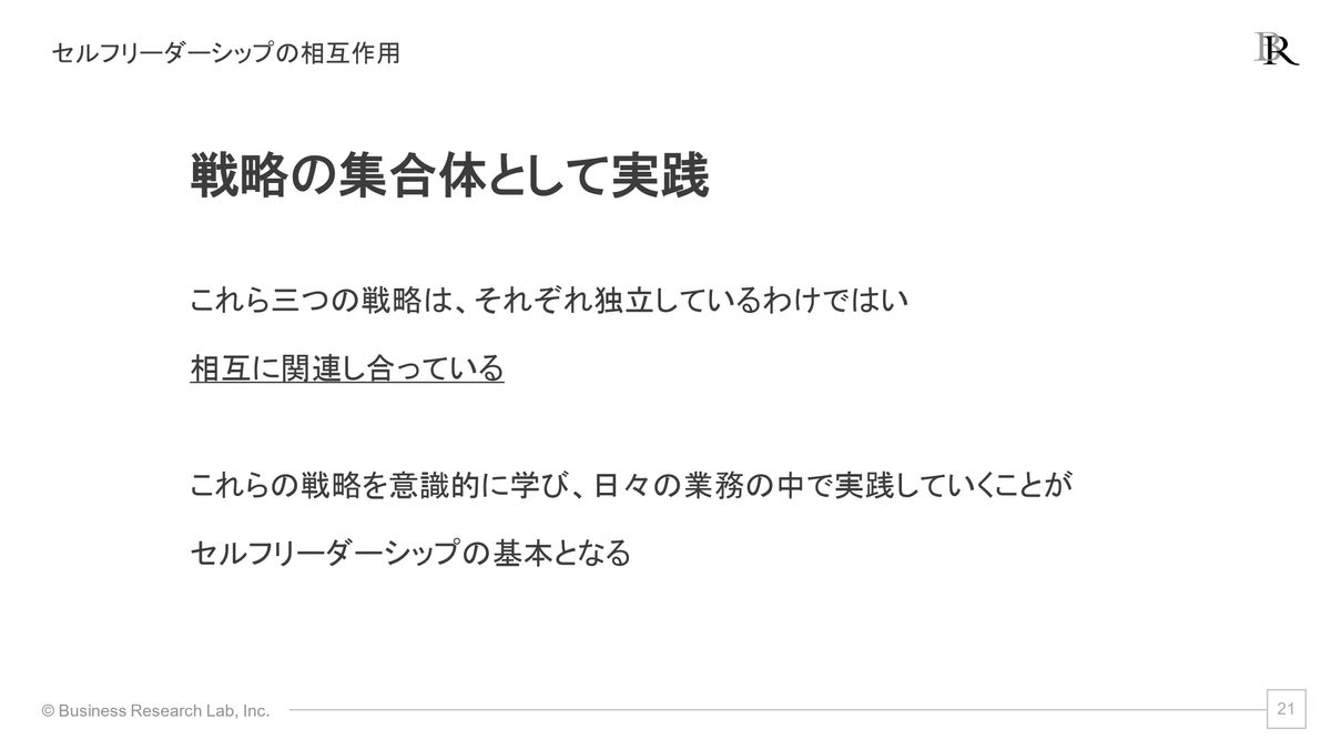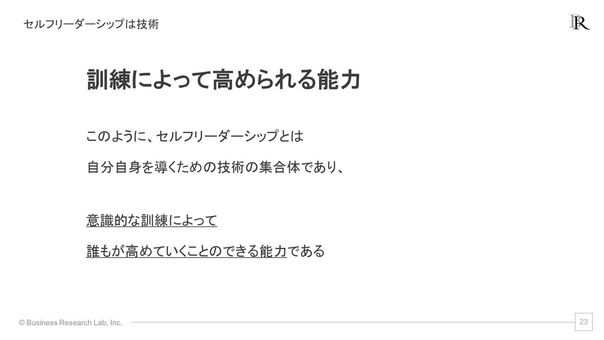 また、セルフリーダーシップってけっこう具体的ですよね。技術の集合体なんだということをご理解いただけたかと思います。