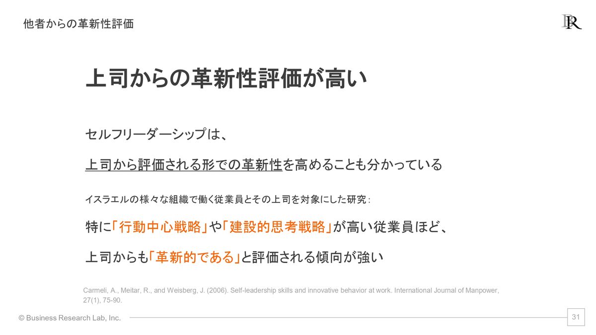 要するに、セルフリーダーシップは、客観的に見ても革新性を高めることがわかったわけです。言われたことをやるだけではないというのが、セルフリーダーシップのおもしろい点ですよね。