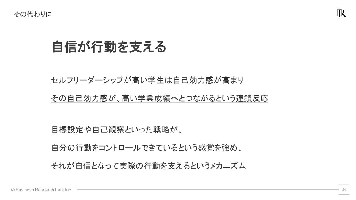 自分で目標を立てて、そしてそれに対して進捗を管理していく。それから自分で内発的なモチベーションを高めていく。そして建設的な思考パターンを取っていくことが、「自分の行動をうまくコントロールできているんだ。だから、自分の能力はきちんと発揮することができる」というような自己効力感が高まっていって、実際に行動を取ることが明らかになったということです。