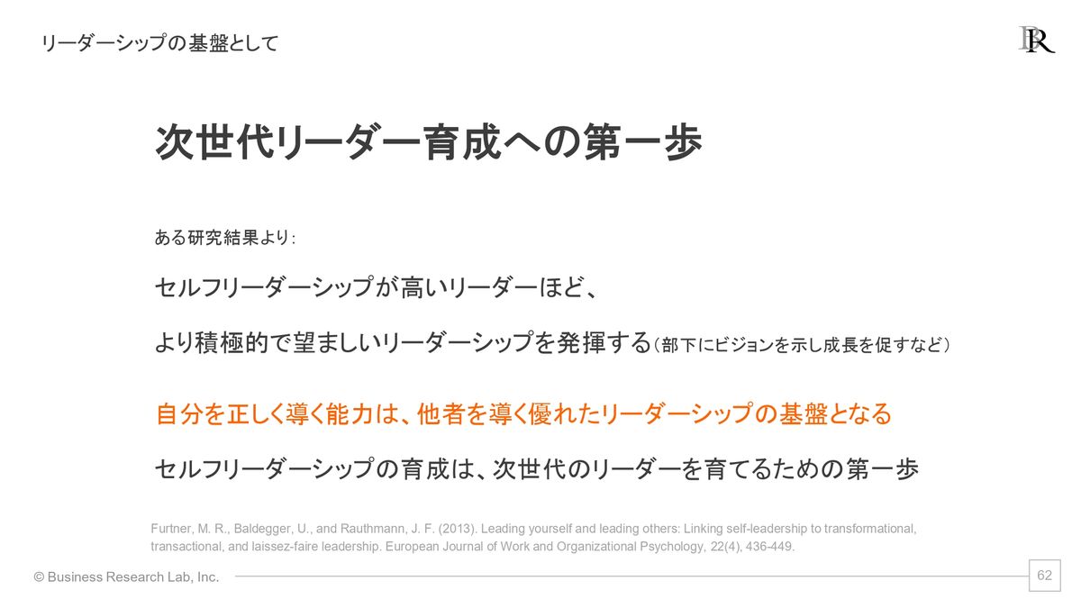 これは何を意味しているかというと、自分自身をうまく導ける人というのは、他者もうまく導いていくことができるということがわかったわけですね。これは言ってみれば、リーダー育成や、次世代リーダーシップの開発の文脈でも、実はセルフリーダーシップを高めていくということが有効なんじゃないのかなと考えられるわけです。