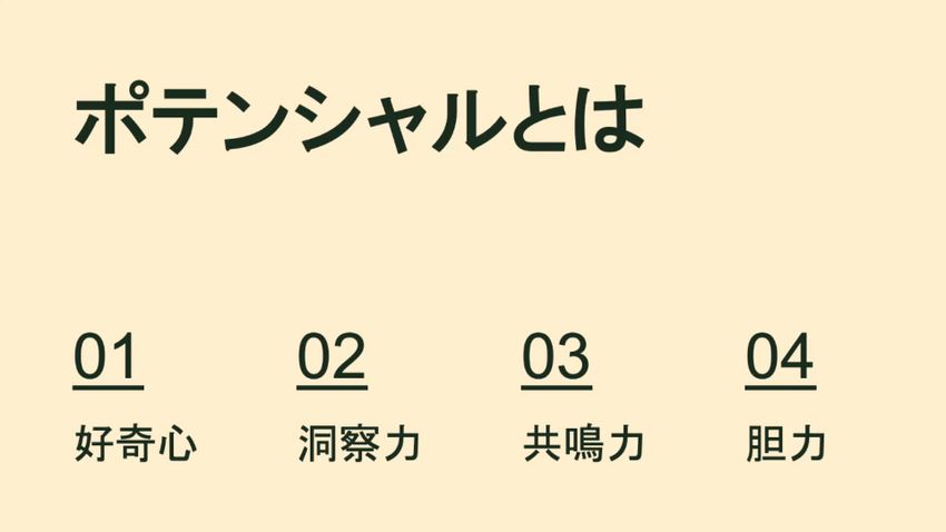 吉田:今のナンパの例えは、まさに1(好奇心)と4(胆力)が両方そろっていないと成立しないですね。