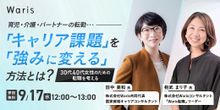田中美和氏(以下、田中):本日は株式会社Waris主催、「育児・介護・パートナーの転勤……『キャリア課題』を『強みに変える』方法とは?」にお集まりいただきまして、誠にありがとうございます。「30代・40代女性のための転職を考える」と題しまして、13時までの約1時間のウェビナーとなっております。どうぞ最後までよろしくお願いいたします。