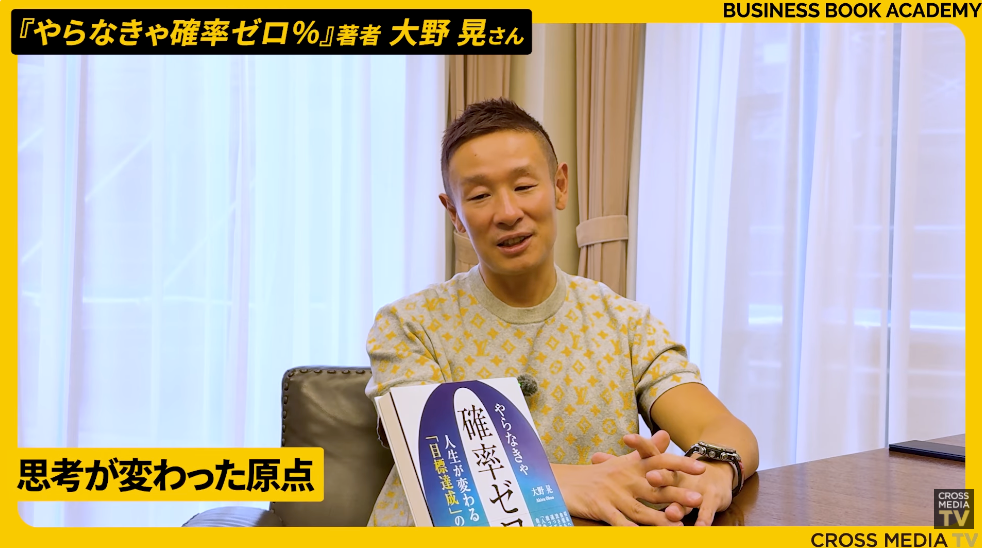 【3行要約】 ・ビジネス書出版社クロスメディアグループによる公式チャンネル「クロスメディアTV」から、今回は『やらなきゃ確率ゼロ% 人生が変わる「目標達成」のレッスン』著者の大野晃氏のゲスト回をお届けします。