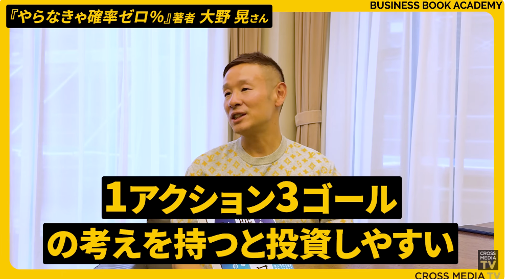 もっと言えば、「1アクション3ゴール」ということを本に書いているんです。これは(経営コンサルタントの)和仁達也さんという人が大本なのかわからないですけど、「1つのアクションに対して、3つぐらいゴールを設定したほうがいい」という話をしているんですね。