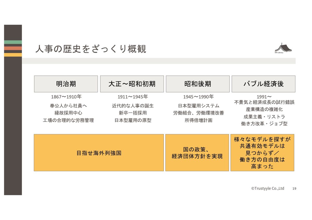 2024年にふと「人事の歴史についてたどってみたい」と思ったんですね。「歴史は繰り返す」というか、けっこう歴の長い人事の方に(人事の課題について)聞くと「あ、なんか似たようなテーマがまた来たな」みたいなことを言われるんです。