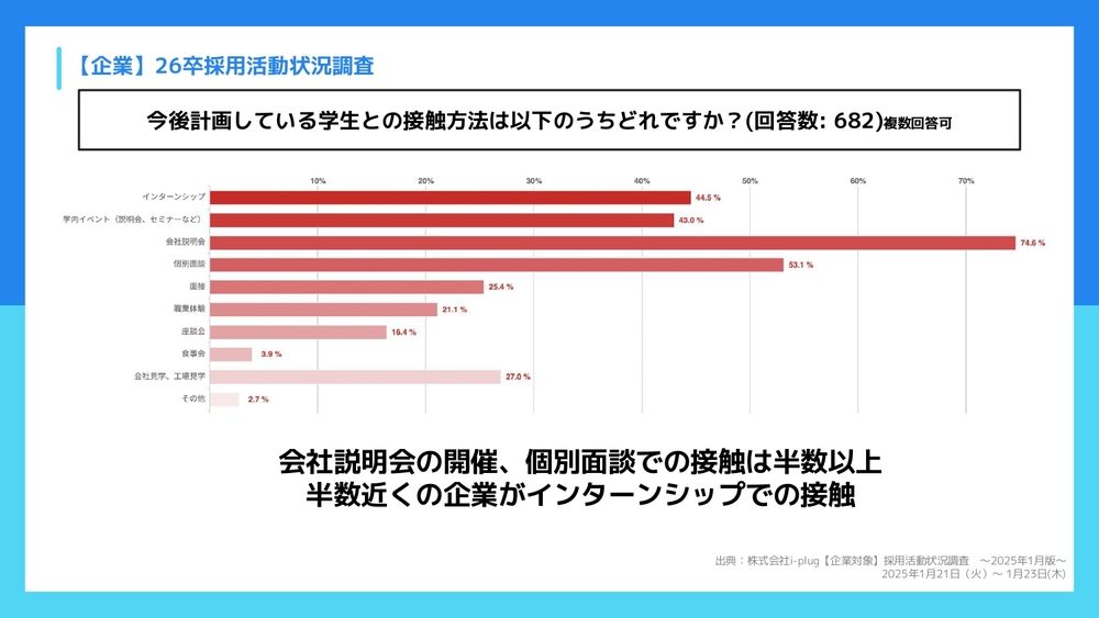 鷹野:そうですね。ここに関しては、会社説明会が最多というのは、ここも例年どおりかなというところですね。
