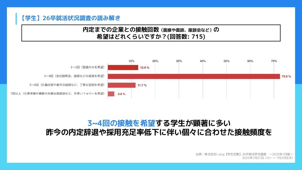 内定までに3回〜4回の接触を希望する学生が多い