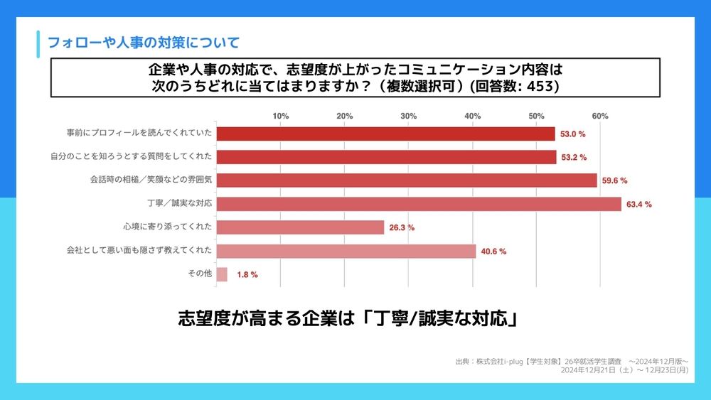 前本:続いて、「企業や人事の対応で、志望度が上がったコミュニケーション内容は次のうちどれに当てはまりますか?」ということですね。