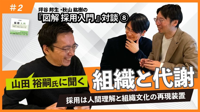 人事領域の専門家の株式会社壺中天 代表取締役の坪谷邦生氏と採用市場研究所 所長の秋山紘樹氏が、毎回ゲストを迎えてトークセッションを行う「採用入門」シリーズ。今回は、株式会社令三社 代表取締役の山田裕嗣氏と「組織の代謝」をテーマに語り合いました。ベンチャーと老舗企業とでは、時間軸の感覚が大きく異なり、それに伴って組織のデザインや作り方にどう影響していくのかを読み解いていきます。