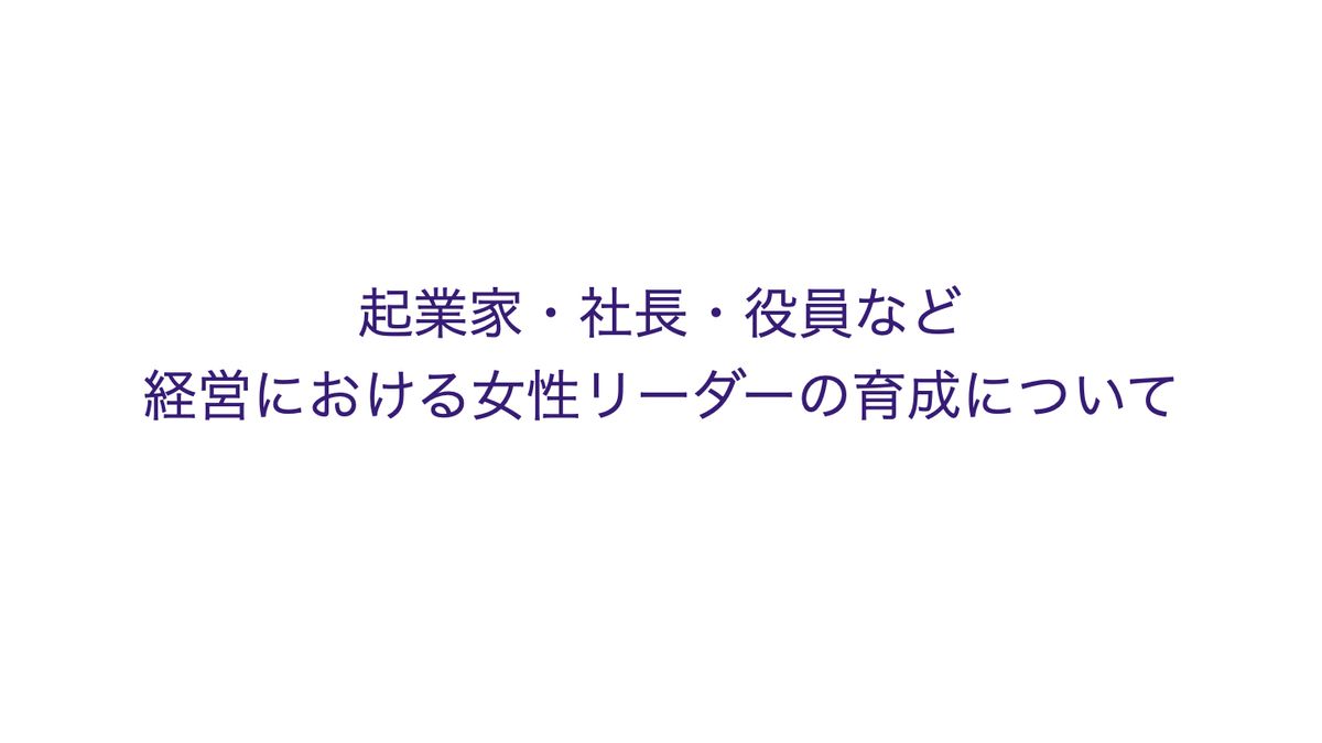 吉村美音氏(以下、吉村):ありがとうございます。ちょっと盛り上がりすぎるので、次の話題にまいります。その2、「起業家・社長・役員など経営における女性リーダーの育成について」というテーマで、お話をうかがっていきたいと思います。