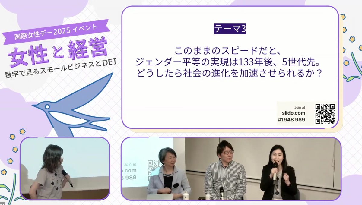 「スモールビジネスを、世界の主役に。」をミッションに掲げるフリー株式会社が国際女性デー2025を記念して開催したイベント『女性と経営 数字で見るスモールビジネスとDEI』より、エール株式会社 取締役の篠田真貴子氏、公益財団法人山田進太郎D&I財団 COOの石倉秀明氏をゲストに迎えたセッションの様子をお届けします。若い世代のジェンダーバイアスが変わりつつある現状や、女性リーダーのロールモデルの重要性について語り合います。