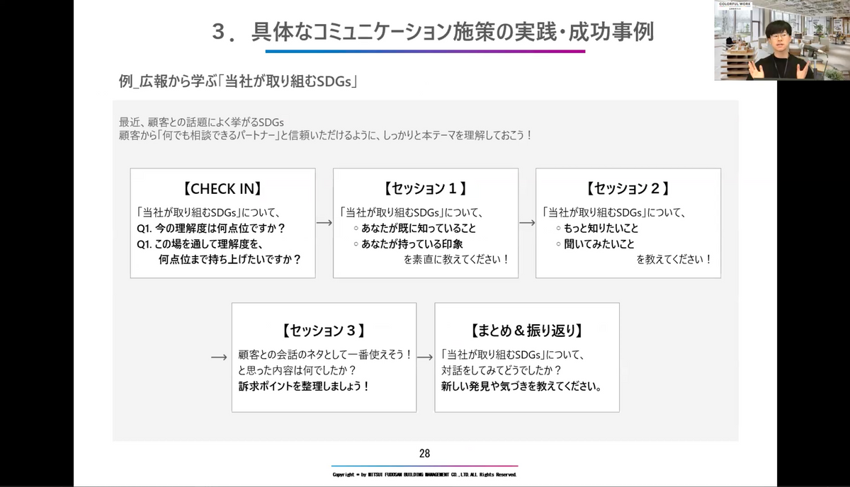この会社は、「お客さまから何でも相談できるパートナーになりたい」という思いを持っていましたので、お客さまに信頼をいただけるようSDGsのテーマについても理解していこう、こんな経緯で企画を実施しました。