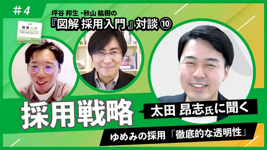 人事領域の専門家の株式会社壺中天 代表取締役の坪谷邦生氏と採用市場研究所 所長の秋山紘樹氏が、毎回ゲストを迎えてトークセッションを行う「採用入門」シリーズ。今回は、株式会社ゆめみ 取締役 CHROの太田昂志氏を迎え、同社の採用戦略について鼎談します。本記事では、同社の独自のカルチャーや多様な人材を活かす仕組みを紹介しました。