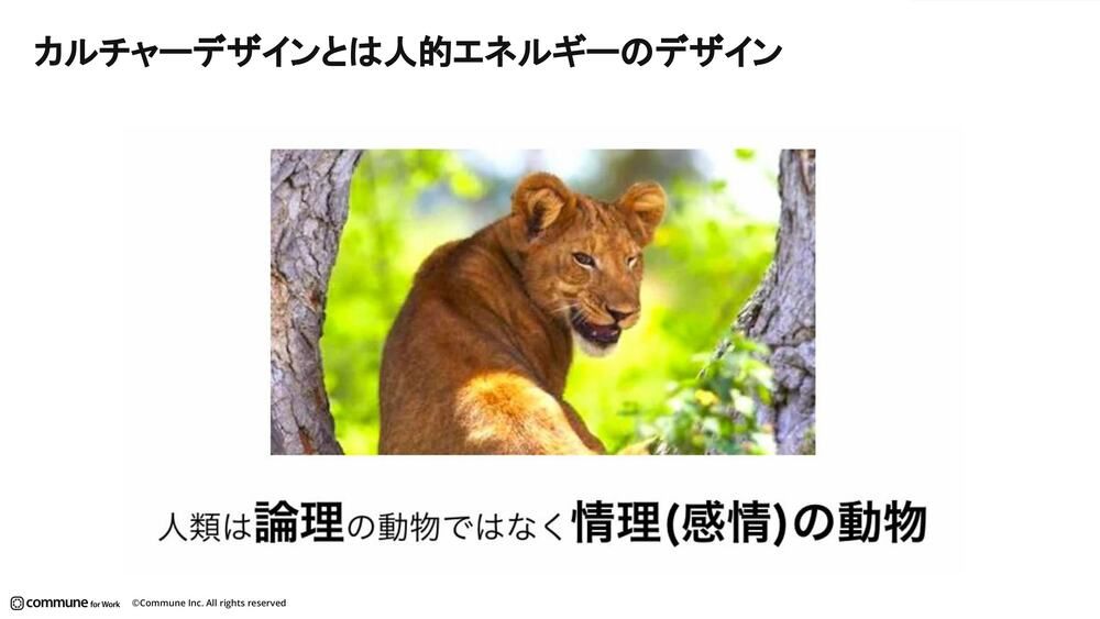 私は常に言うんですが、人類は基本的に理性で動くものの、動物的には論理の動物ではなくて、情理・感情の動物であるという部分が強いです。なのでこれを念頭に置いた上で、いかにカルチャーデザインをしていくかというところが、本当に大事だなと思っております。
