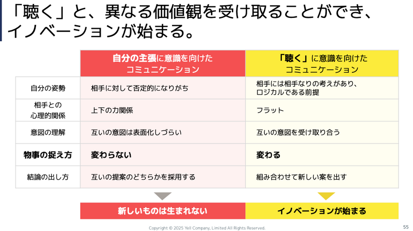 だから「聴く」とか、「対話」がないと、むしろイノベーションは無理なんじゃないかなと思います。