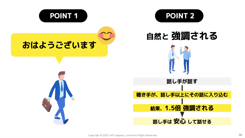 最後ですね。こうやっていろんな角度から「聴く」が大事ですよというお話をさせていただくので、最近よく言われるのは、「いや、大事なのはわかっています! もういいでーす!」みたいな(笑)。