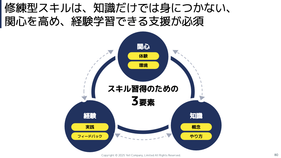 「好奇心は醸成できる」ということをご紹介しようと思っております。あと繰り返しになりますけれども、やはり身体知なので、実際に体験を重ねることで習熟できるスキルです。