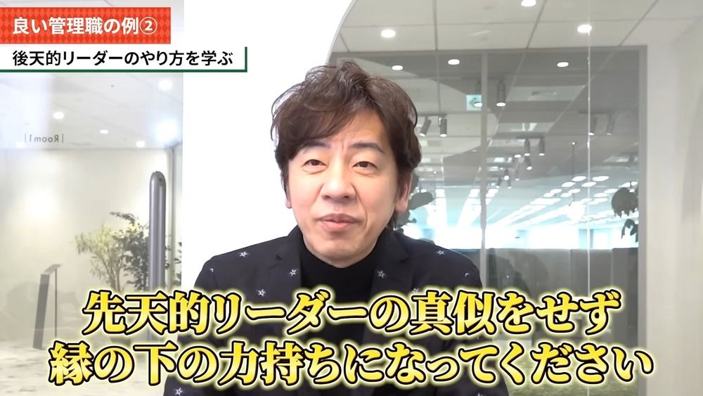 木下:では、もともとリーダータイプじゃなかった人、そして良いリーダーや管理職になる人はどんな人かというと、まず、後天的リーダーのやり方を学ぶんですね。後天的リーダーというのは、「俺についてこい」というタイプではなくて、「縁の下の力持ち」タイプなんですよ。