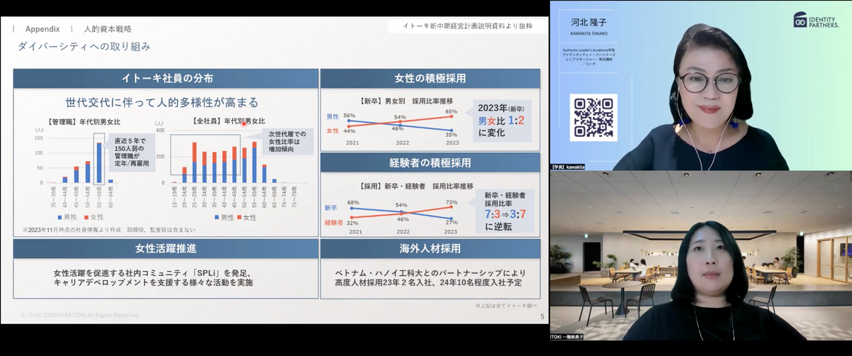 河北隆子氏(以下、河北):ありがとうございます。やはりトップのコミットメントってはすごく響きますと。今みたいにリーダーがリアルな現場を抱えて、人事だけではなくそれぞれの立場から導き出すという事が大事。