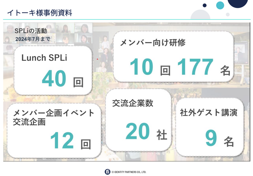 アイデンティティー・パートナーズ株式会社主催イベント「ダイバーシティサミット-session1」より、株式会社イトーキの女性限定コミュニティ「SPLi(サプリ)」の取り組みを紹介します。社員コミュニティをただの会合として終わらせないための工夫や、実際に行っている企画の内容など、企業の多様性施策のヒントとなる情報をお届けします。