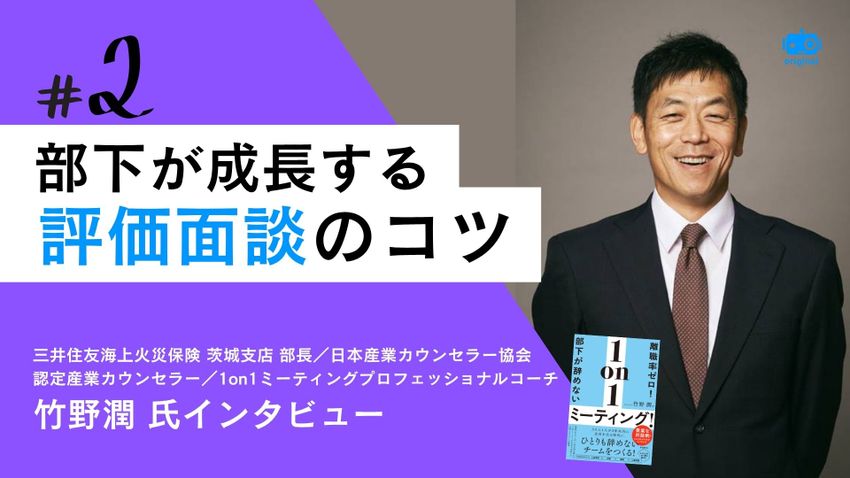 「人事評価が面倒くさい」「ネガティブな評価をつけるのが憂鬱」そんな悩みを抱える管理職も少なくないのではないでしょうか。今回は、『離職率ゼロ!部下が辞めない1on1ミーティング!』著者で三井住友海上火災保険 三重支店 部長の竹野潤氏に「部下が成長する評価面談のコツ」についてインタビューしました。本記事では、メンバーの納得感が高まり成果につながる「人事評価」の仕方を解説しました。