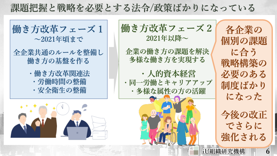 なので、法令・政策は1つのきっかけとして、今みたいな検討をする。会社と働く方との関係性に今回の措置を入れて、「どうですか?」という、こういう順番になるんだろうと思います。