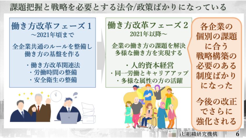 これが今回の対応をどうするかというダイバーシティ戦略そのものなので、そのための1つのパーツとして、経営目線の働き方改善をどう浸透させるか。さらにこれから10月に向けた法改正対応の報道もされると思うので、いろんな方の意識がそこに向きます。なので、こういった戦略推進をするにはものすごくいい機会なんですね。