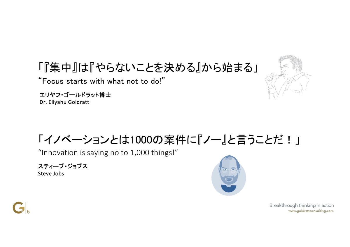 世界的ベストセラー『ザ・ゴール』の著者、ゴールドラット博士の息子である、Goldratt Group グローバルCEOのラミ・ゴールドラット氏。イノベーションに対する誤った思い込みを議論して、イノベーターが持つべき心得を学ぶ講演を開催。本記事では、スティーブ・ジョブズやオムロンを例に挙げ、「するべきこと」ではなく「やらないこと(Not to do)」を決める大切さを語ります。