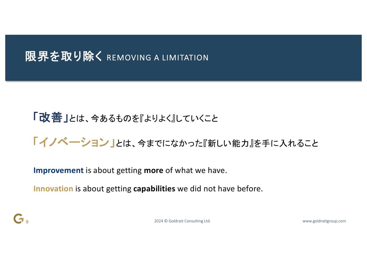 今あるものをより良くするのが改善です。それも悪くはありませんが、いくら改善しても
